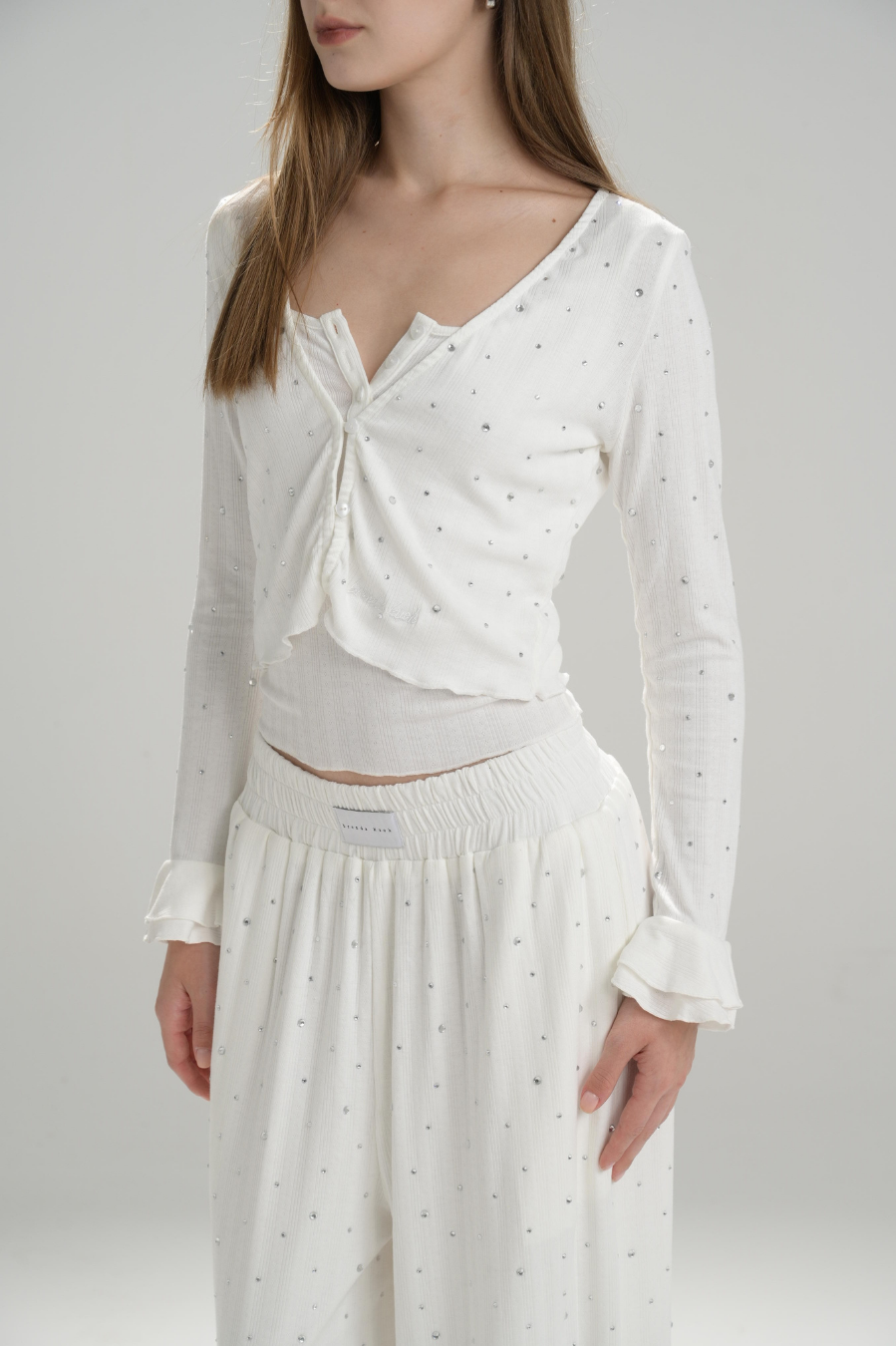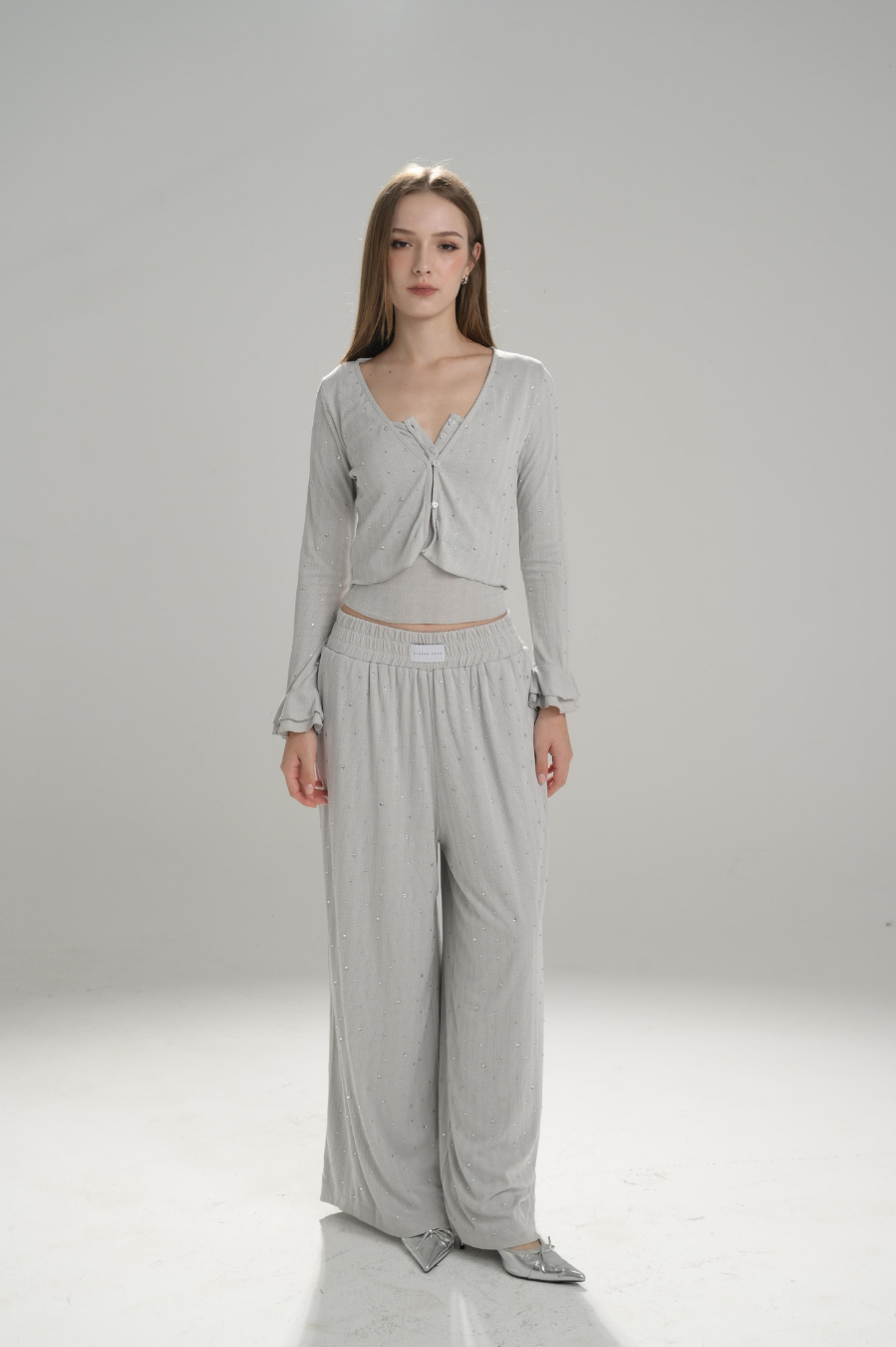 Perfect for sunlit mornings at home, casual coffee runs, or relaxed evenings with friends, the Soft Bling Lounge Set pairs comfort with understated luxury. Its neutral tones and subtle sparkle allow for versatile styling, whether worn together as a cohesive set or mixed with other wardrobe staples.