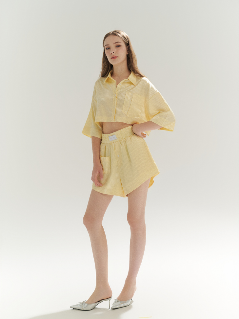Moving seamlessly between work, play and everything in between, a bold fusion of effortless sophistication and urban edge, this top brings a structured yet relaxed vibe while flowy shorts add a touch of easy elegance. Because the city never sleeps, and neither does your style!