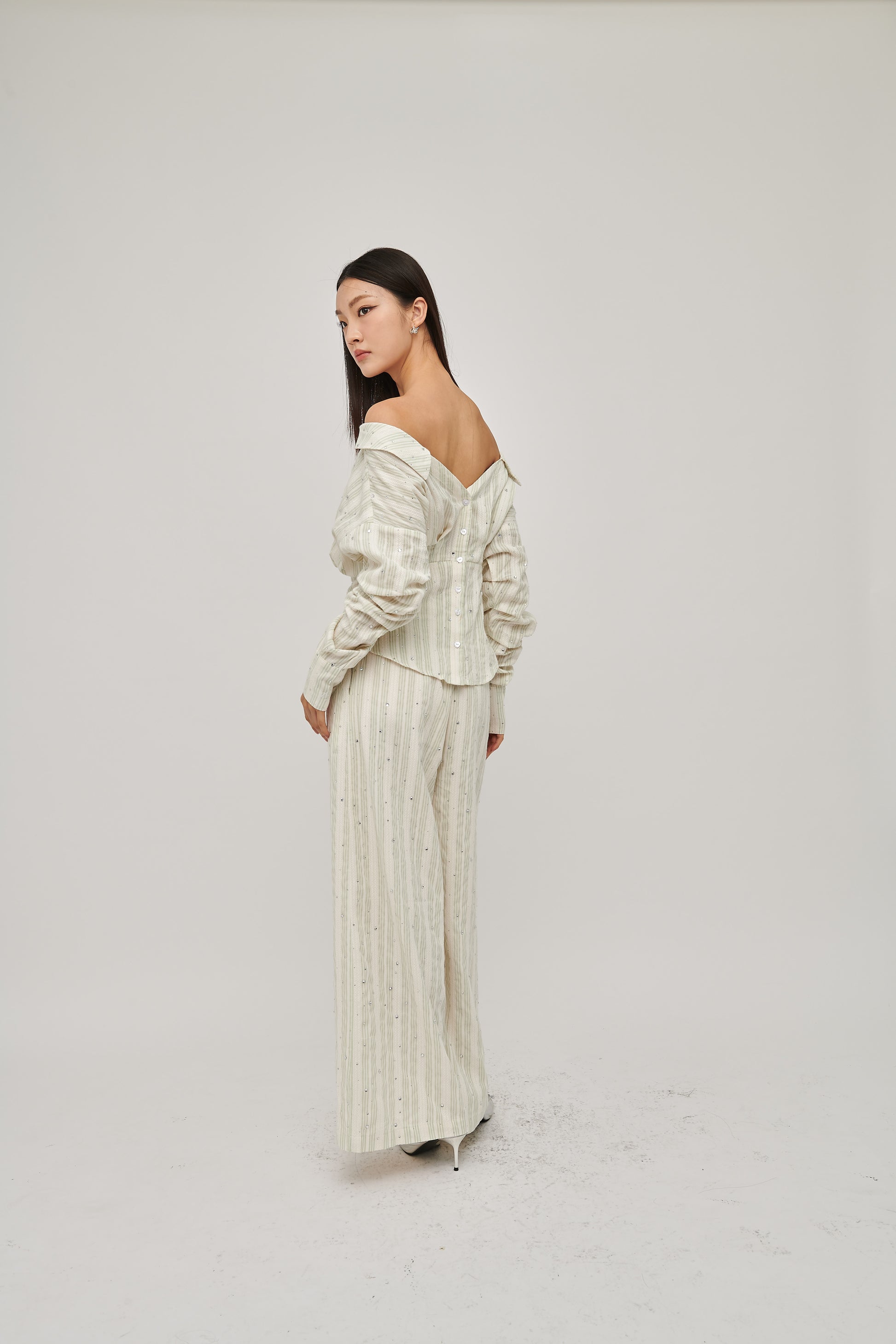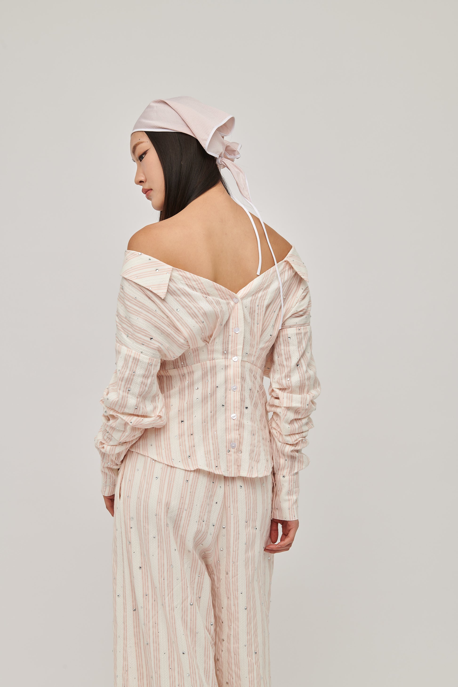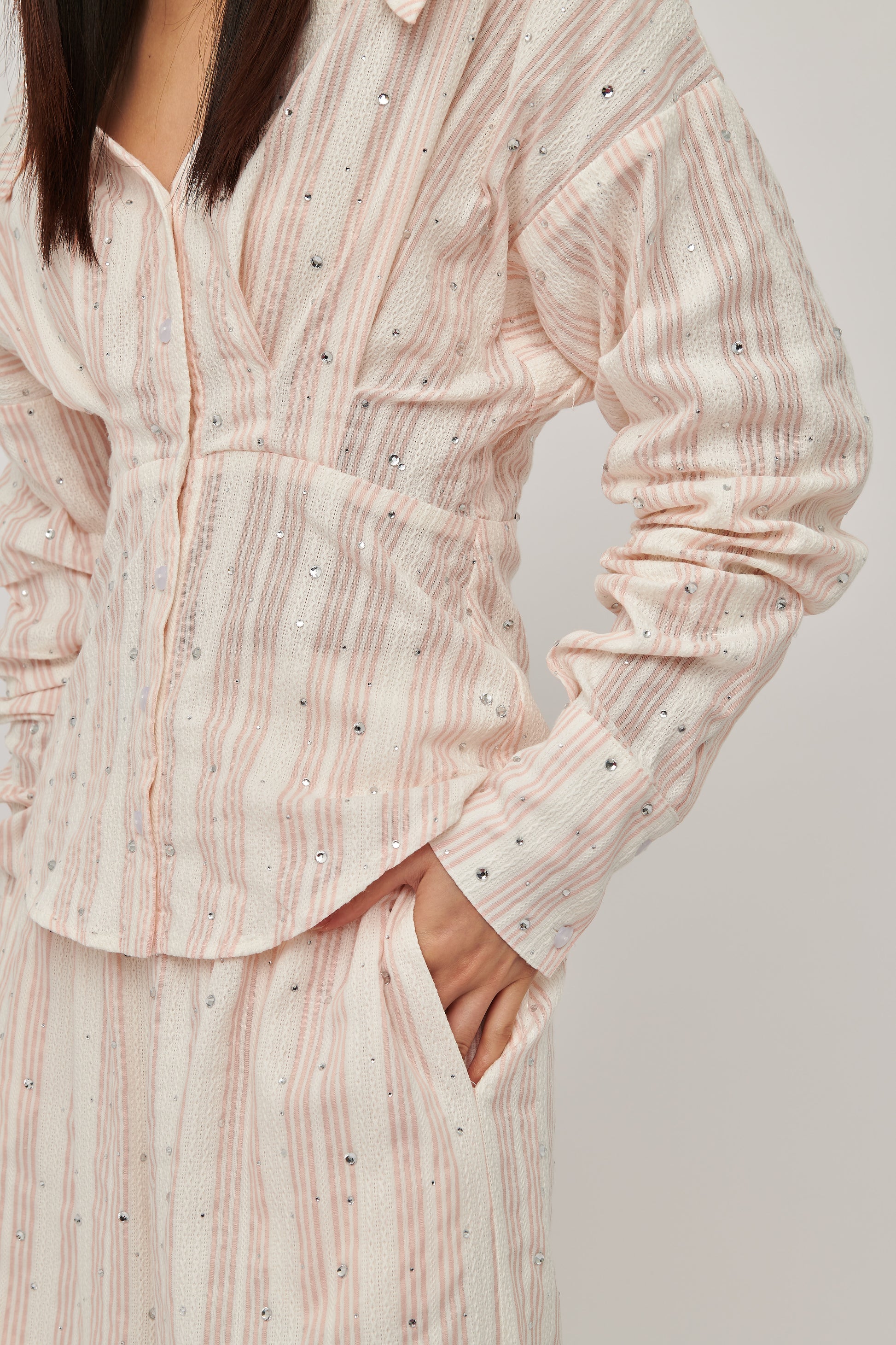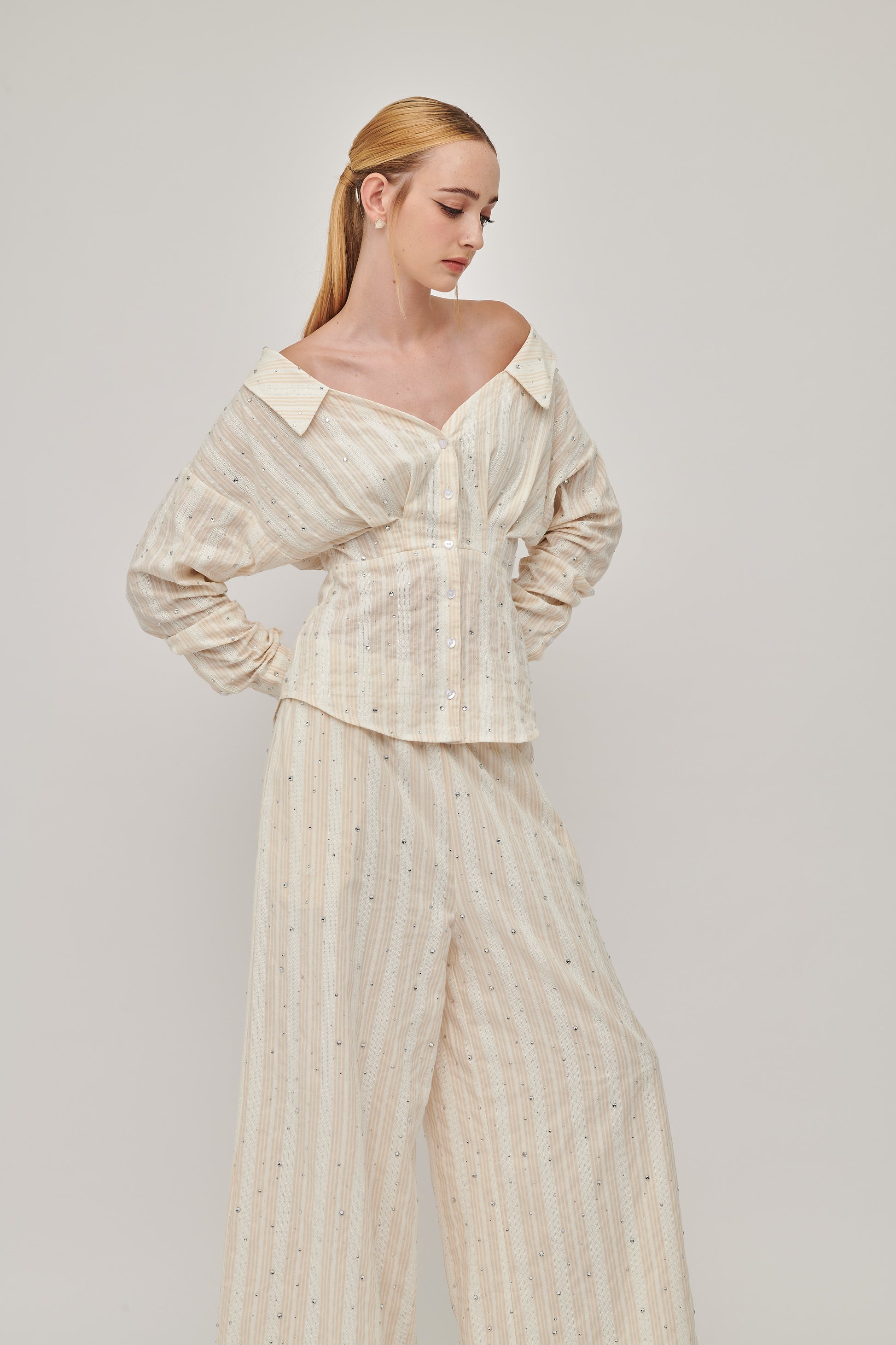 Introducing The Conversation Starter 2.0 Set - an elevated version of our popular Bling Lounge Set, combining comfort with a touch of glamour. The iron-on bling detailing and the adorable heart-shaped buttons make it a true statement piece for any occasion. Versatile and chic, you can style them in different ways to match your mood. Embrace endless wardrobe possibilities by styling the top off-shoulder, buttoned front, or backwards, seamlessly transitioning from dinner nights to slumber parties with its pyjamas-like vibe.