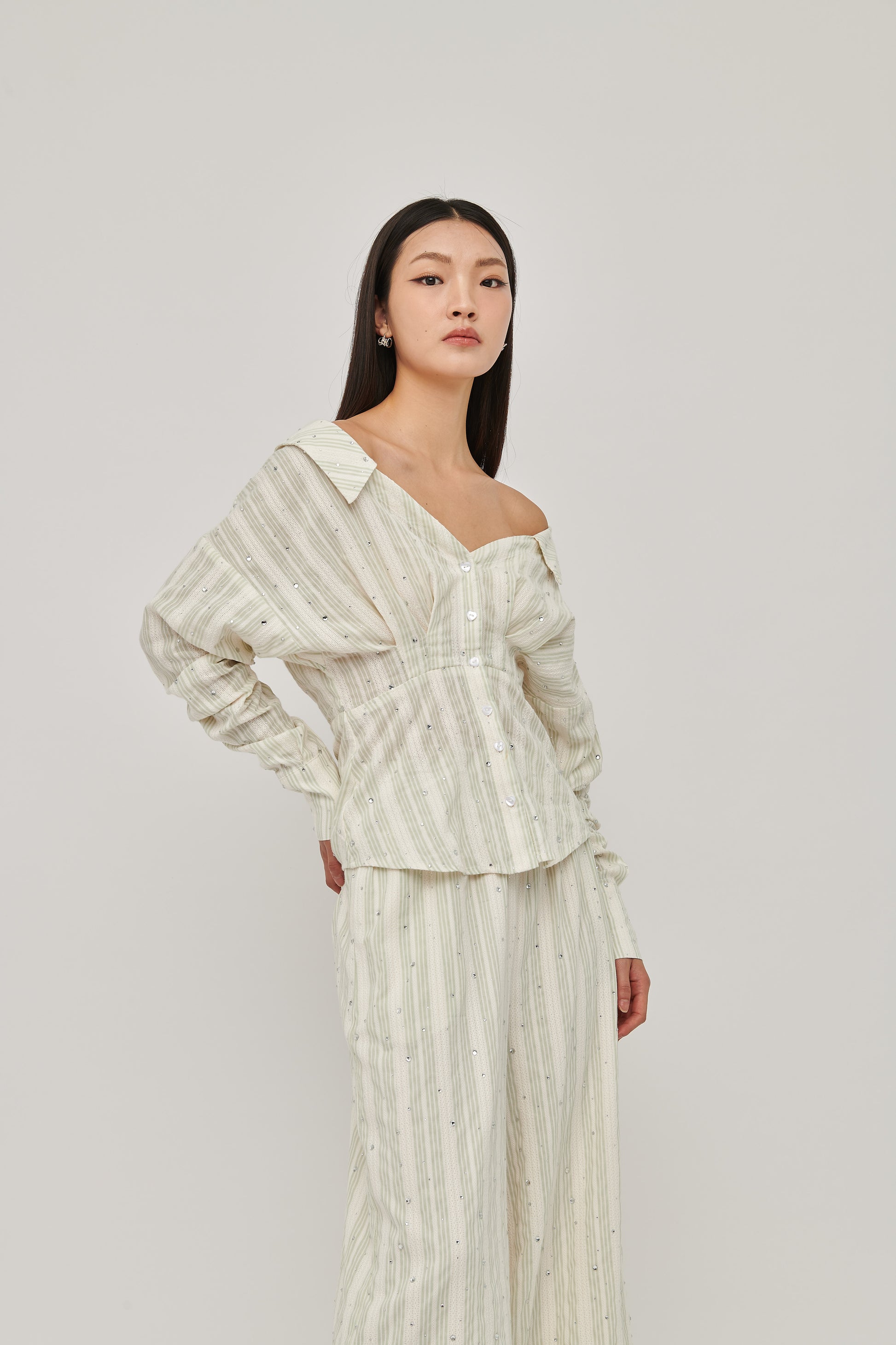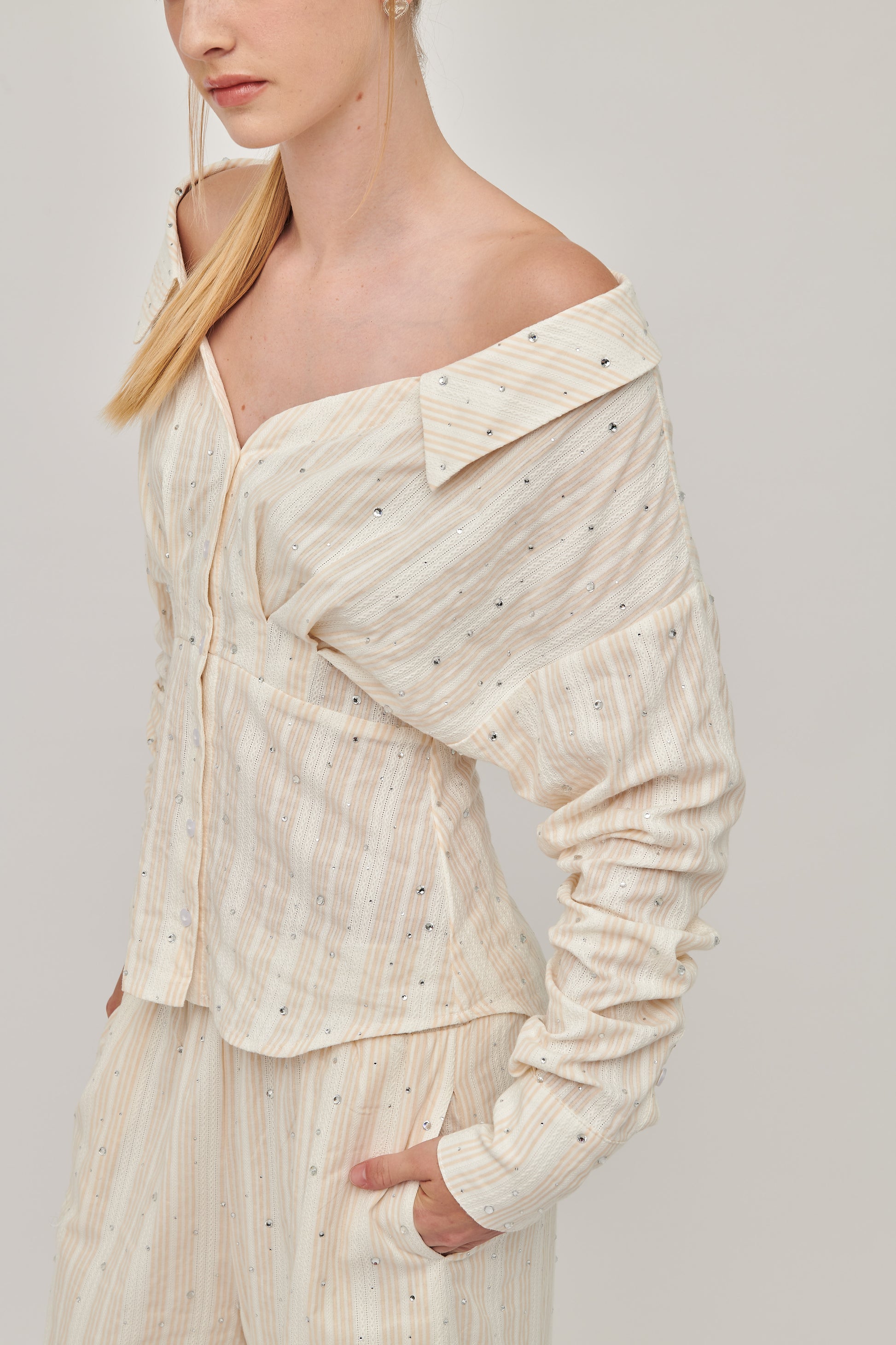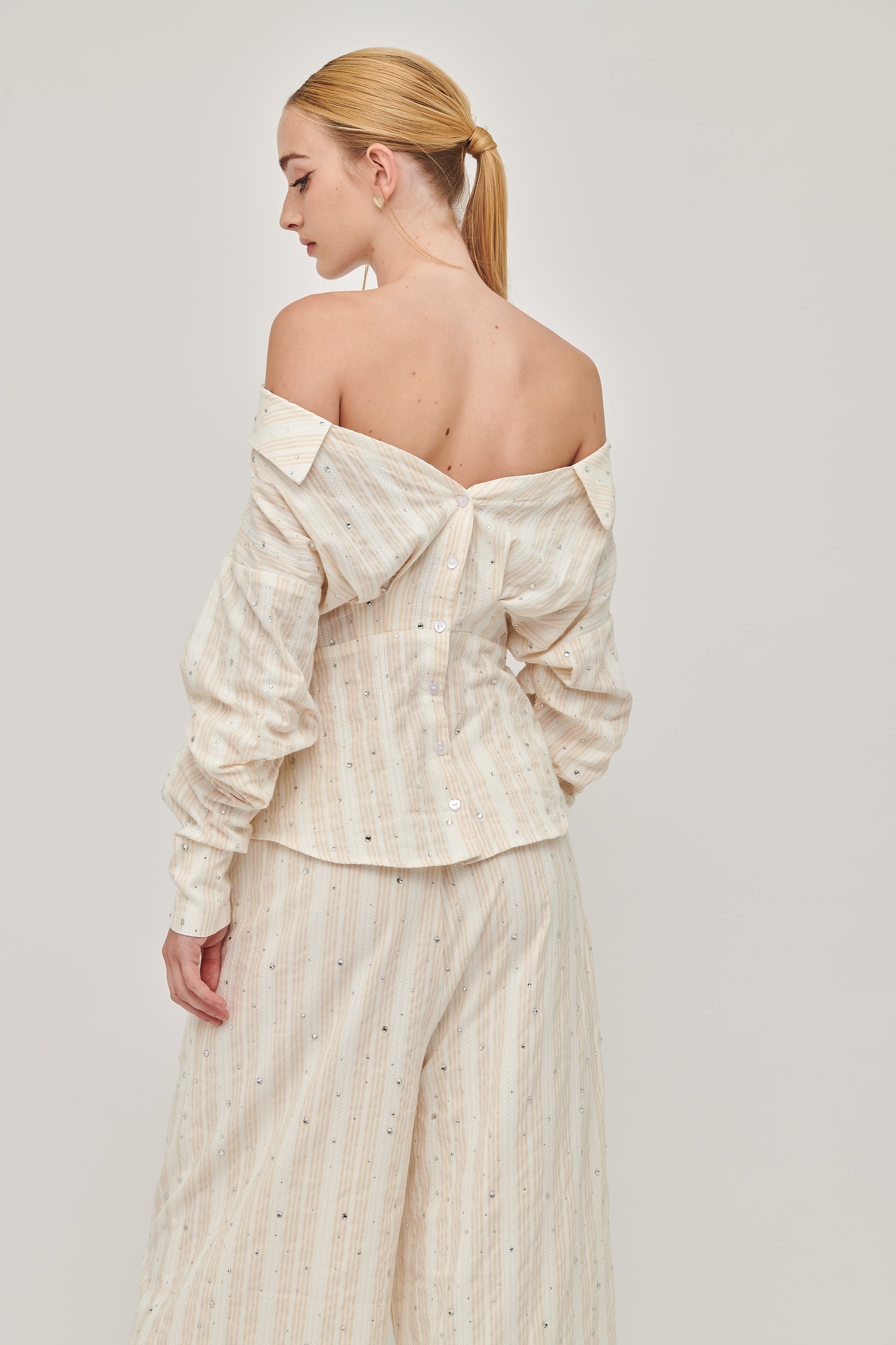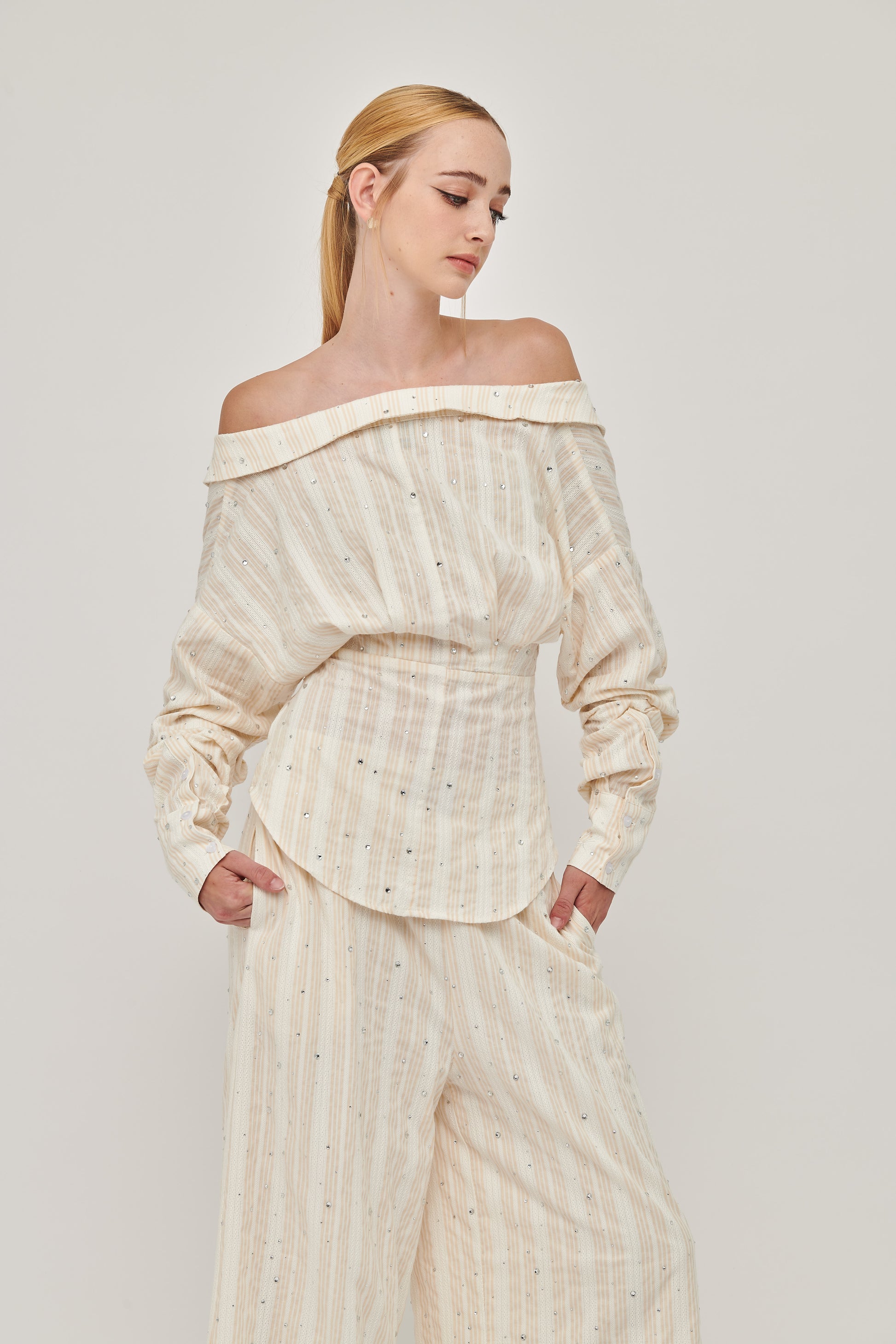 Introducing The Conversation Starter 2.0 Set - an elevated version of our popular Bling Lounge Set, combining comfort with a touch of glamour. The iron-on bling detailing and the adorable heart-shaped buttons make it a true statement piece for any occasion. Versatile and chic, you can style them in different ways to match your mood. Embrace endless wardrobe possibilities by styling the top off-shoulder, buttoned front, or backwards, seamlessly transitioning from dinner nights to slumber parties with its pyjamas-like vibe.