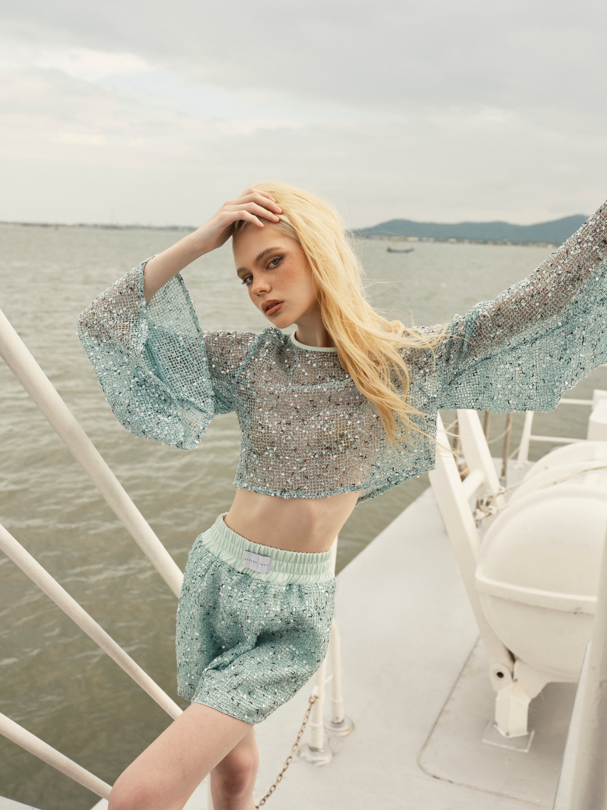 Designed with a relaxed yet polished silhouette, the set can be worn as a full look for effortless sophistication or styled as separates to create endless combinations. Pair it with neutral sandals for an easy daytime aesthetic, or elevate it with jewelry and heels for evenings that call for refined sparkle.